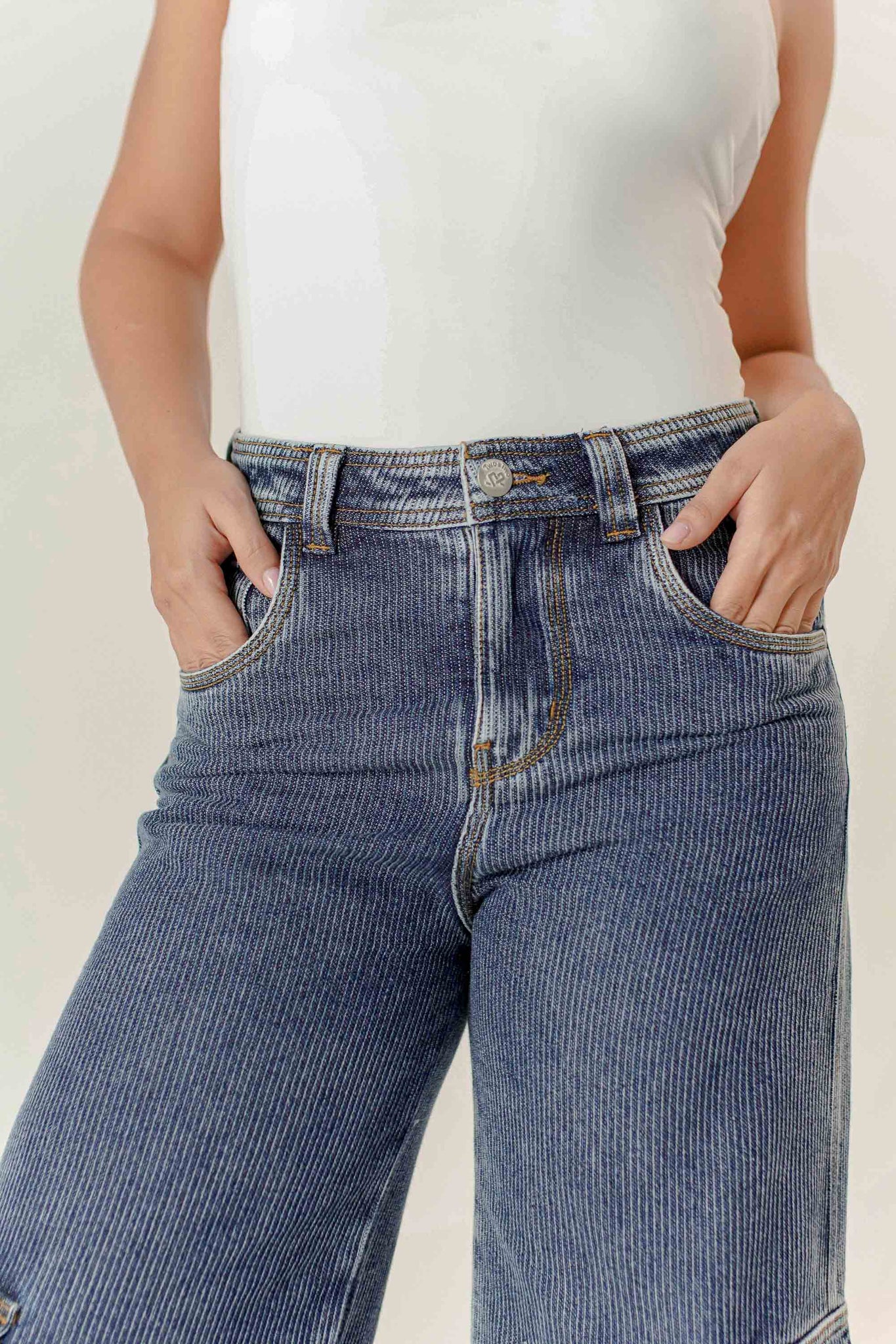 Ribbed Cargo Jean Wide Leg Dama